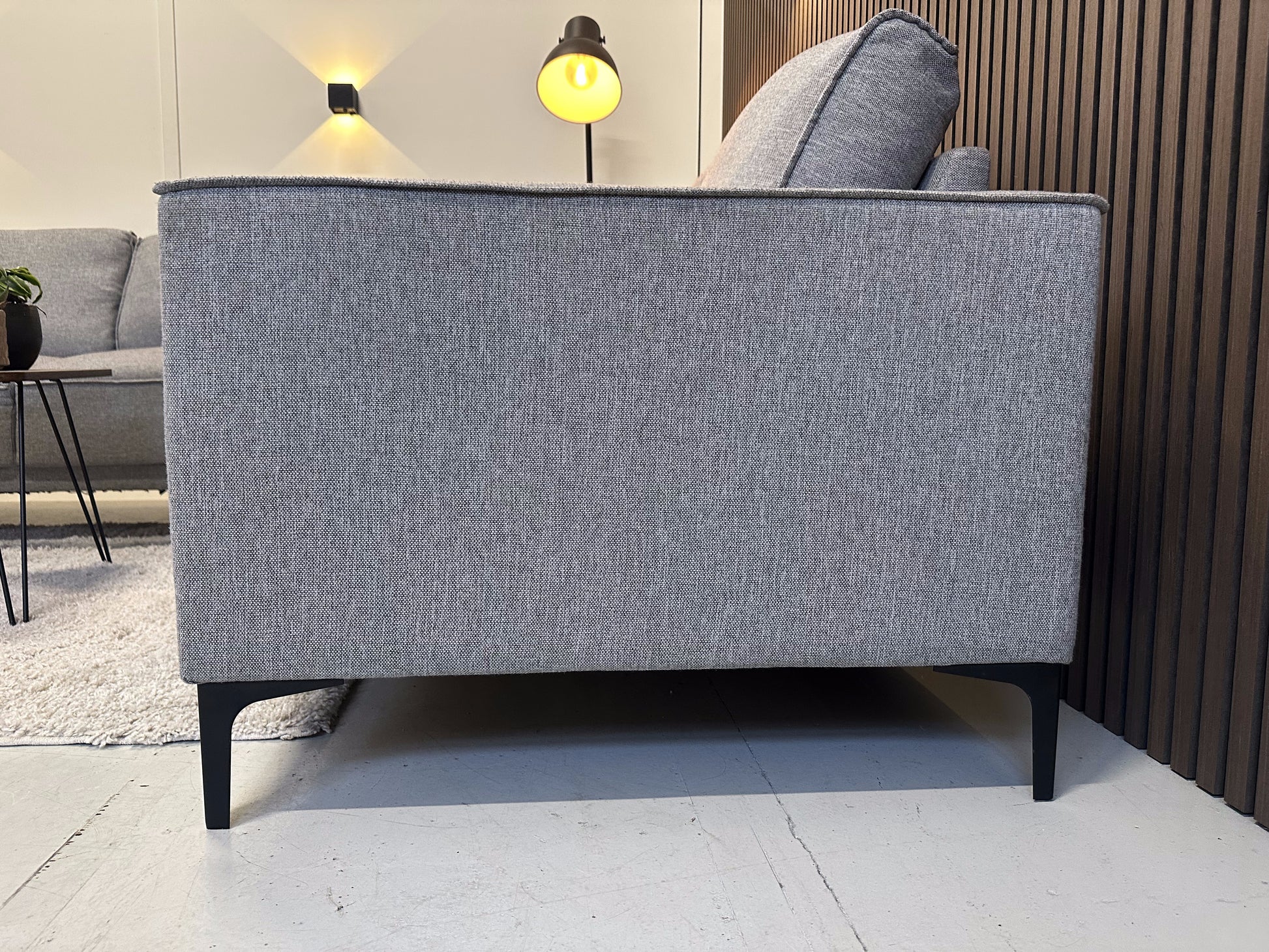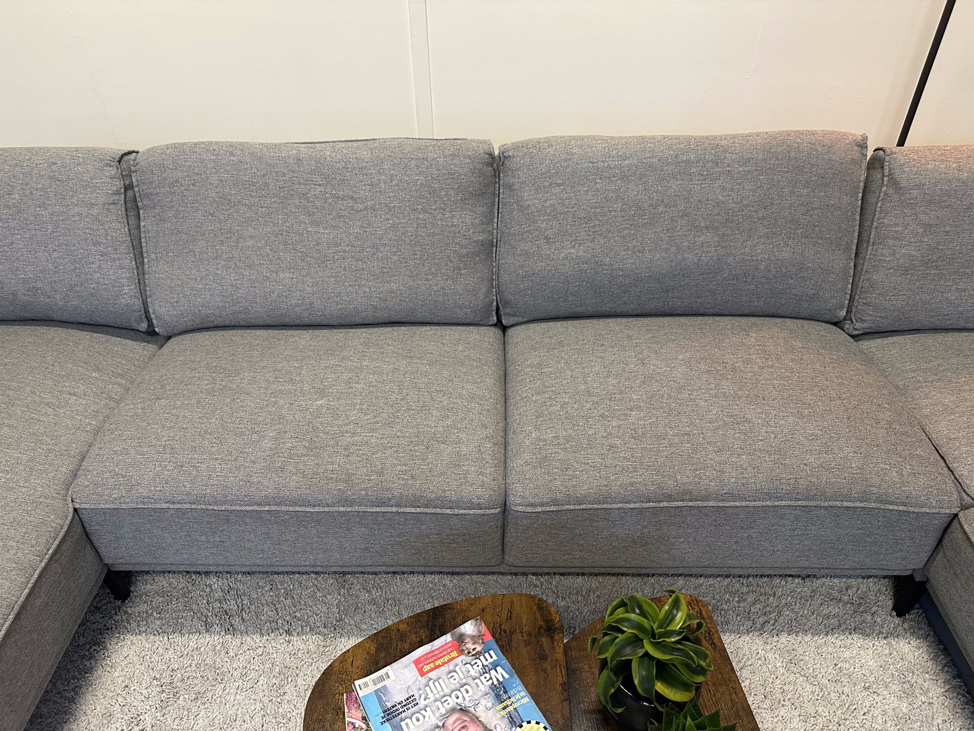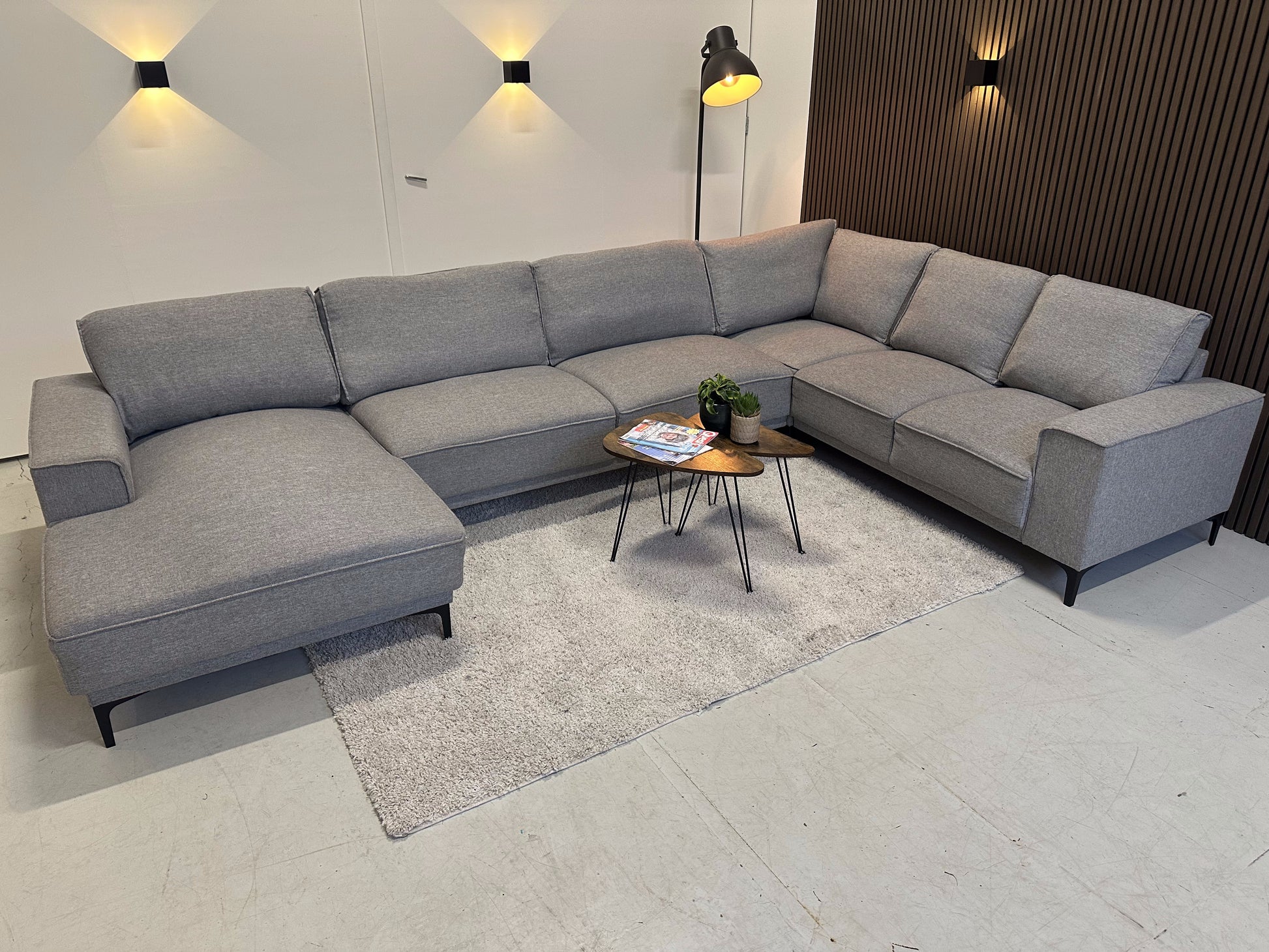 Deze ruime hoekbank in grijze stof biedt veel zitruimte en een comfortabele chaise longue om languit te zitten. De slanke zwarte poten geven de bank een moderne uitstraling, terwijl de neutrale kleur makkelijk te combineren is met verschillende woonstijlen. Een praktische en comfortabele bank voor dagelijks gebruik. Klaar voor een nieuw thuis.